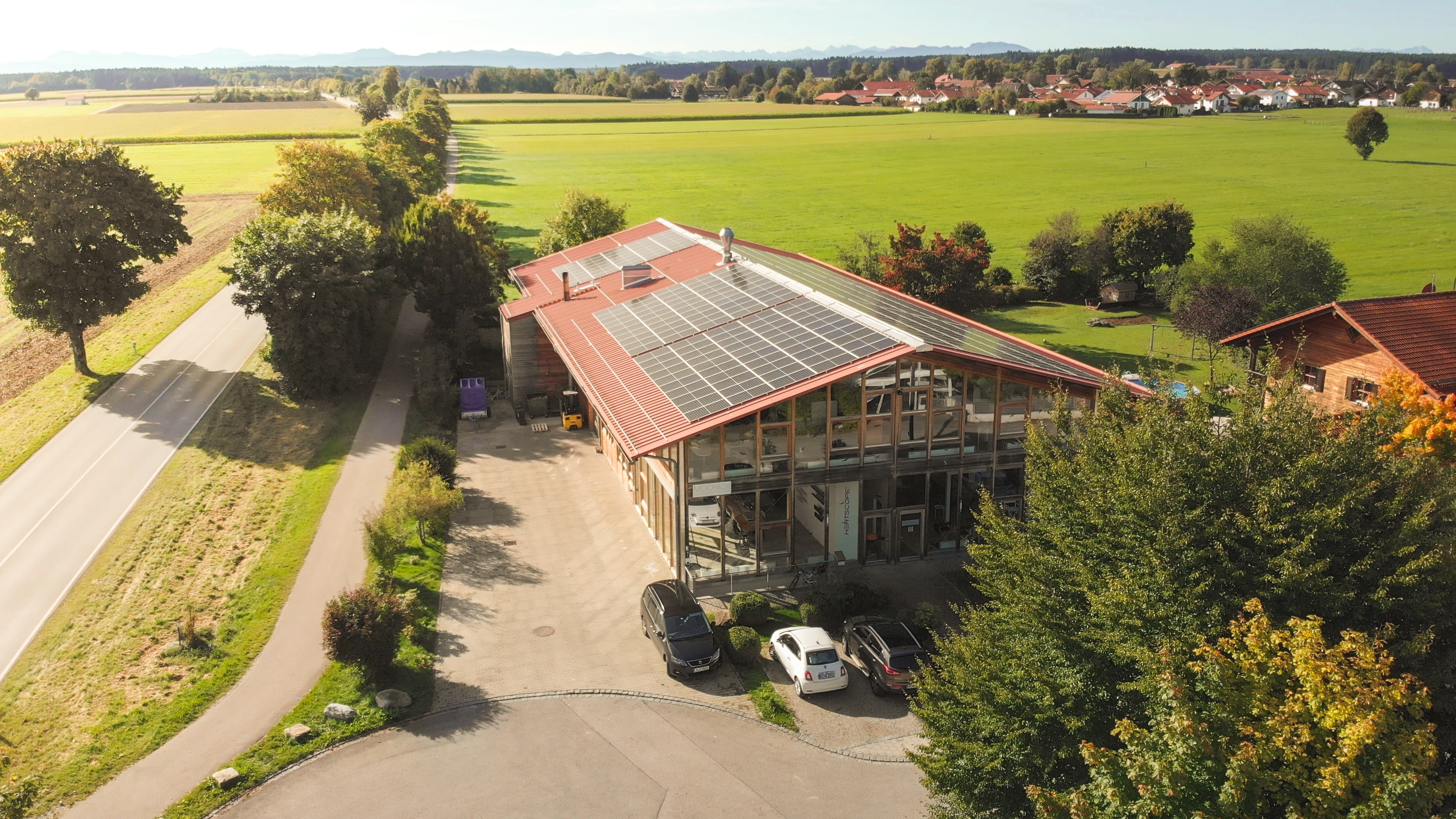 - 2021: Installation PV-Anlage 99,96 kWp in Ost/West Ausrichtung mit Tesla Batteriespeicher