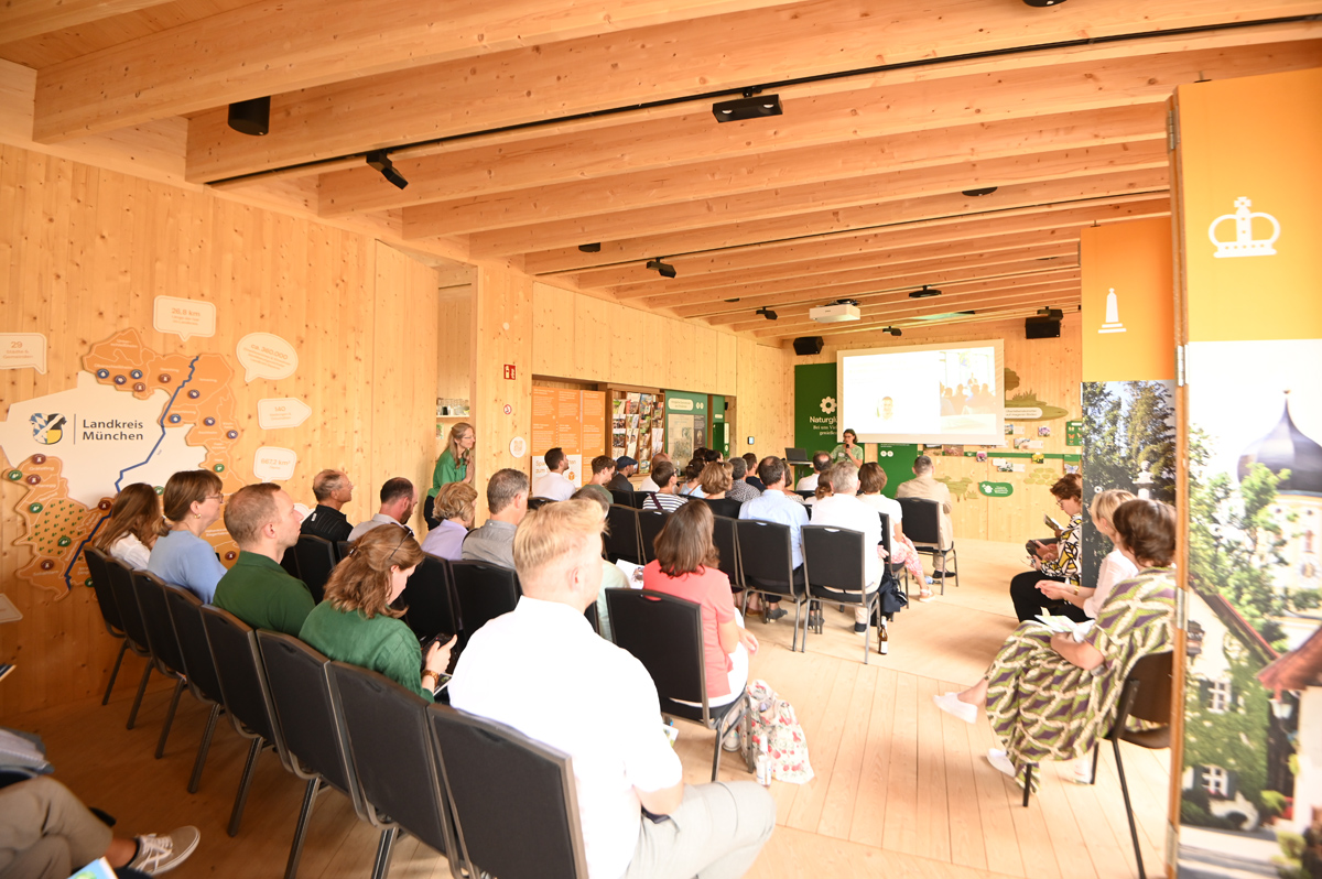 17.07.2024 | Gut besuchter Workshop des Unternehmensbündnisses auf der LandesgartenschauZwischen Blütenmeer und Teichlandschaft liegt der aus nachhaltigen Materialien gebaute Pavillon des Landkreises München auf der bayerischen Landesgartenschau in Kirchheim. In dieser Umgebung fand am Dienstag (16. Juli) der Workshop „ZUSAMMEN. WACHSEN. DURCH KLIMASCHUTZ" des Unternehmensbündnisses in Kooperation mit der Aktion Zukunft+ und dem Landkreis München statt. Neben dem Austausch untereinander stand auch dieses Mal wieder Fachliches im Mittelpunkt der Veranstaltung – und das beschäftigte sich thematisch vor allem mit der Natur.